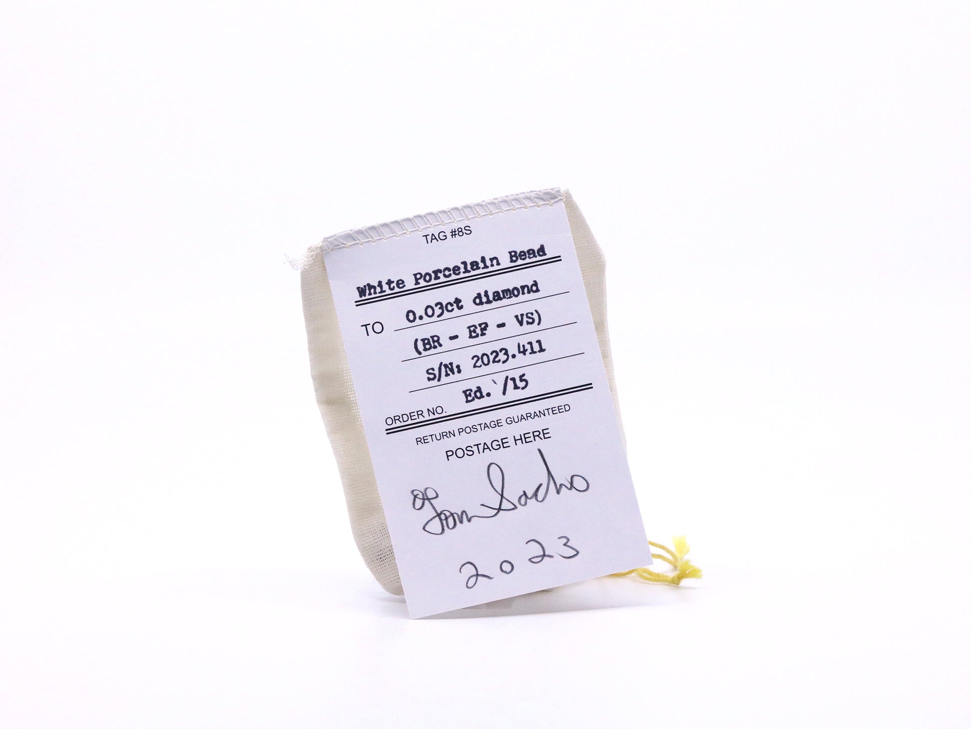 Hand signed muslin pouch.